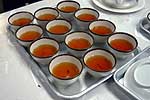 | 2番茶を摘むにはすこし早いとは思いつつ、来月では、またまた遅すぎる。異常気象の後遺症で、やや無理のあるお茶摘み行事となりました。 今回は、去年の冬に実験した紅茶づくりを2番茶を使いチャレンジ。前日13日に有志による茶摘みを実施。やや時期が早く量は確保できないものの、ほんとに若葉の柔かいところを摘むことができました。 約20時間、新聞紙の上で萎凋。折り曲げても葉脈がボキッと折れず、つまむと指紋の跡がつく程度、というのが萎凋完了の目安。 |